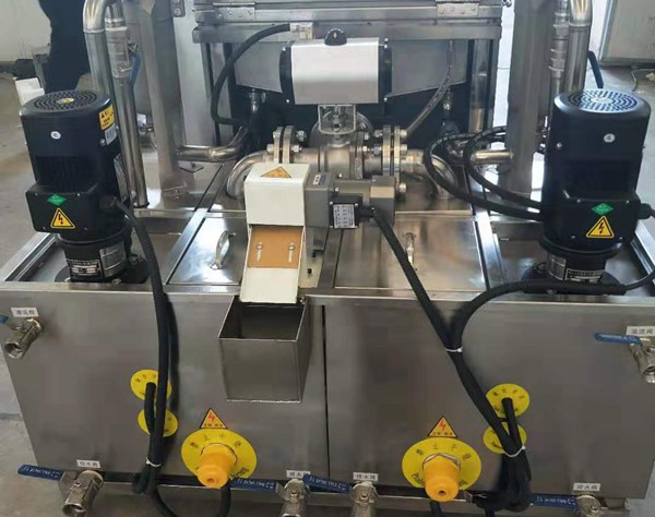 设备由不锈钢制作而成,底部有圆盘,旋转机构带动圆盘转动,实现清洗工序。