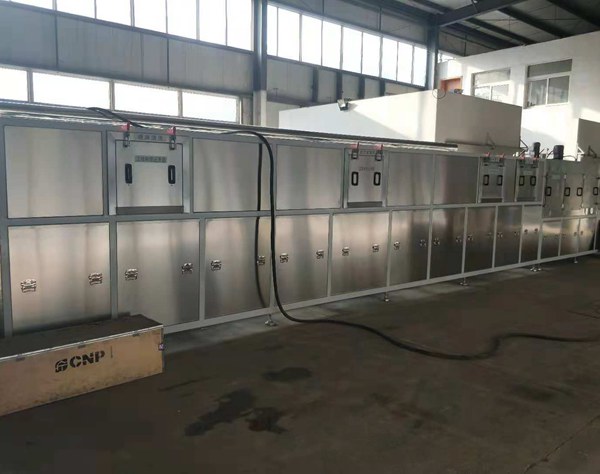 该通过式喷淋清洗机具有工位多,功能全,结构合理,操作方便,清洗效果好的优点,这对于大批量工件的清洗,改善劳动环境,提高清洗和生产质量,具有重要的意义。